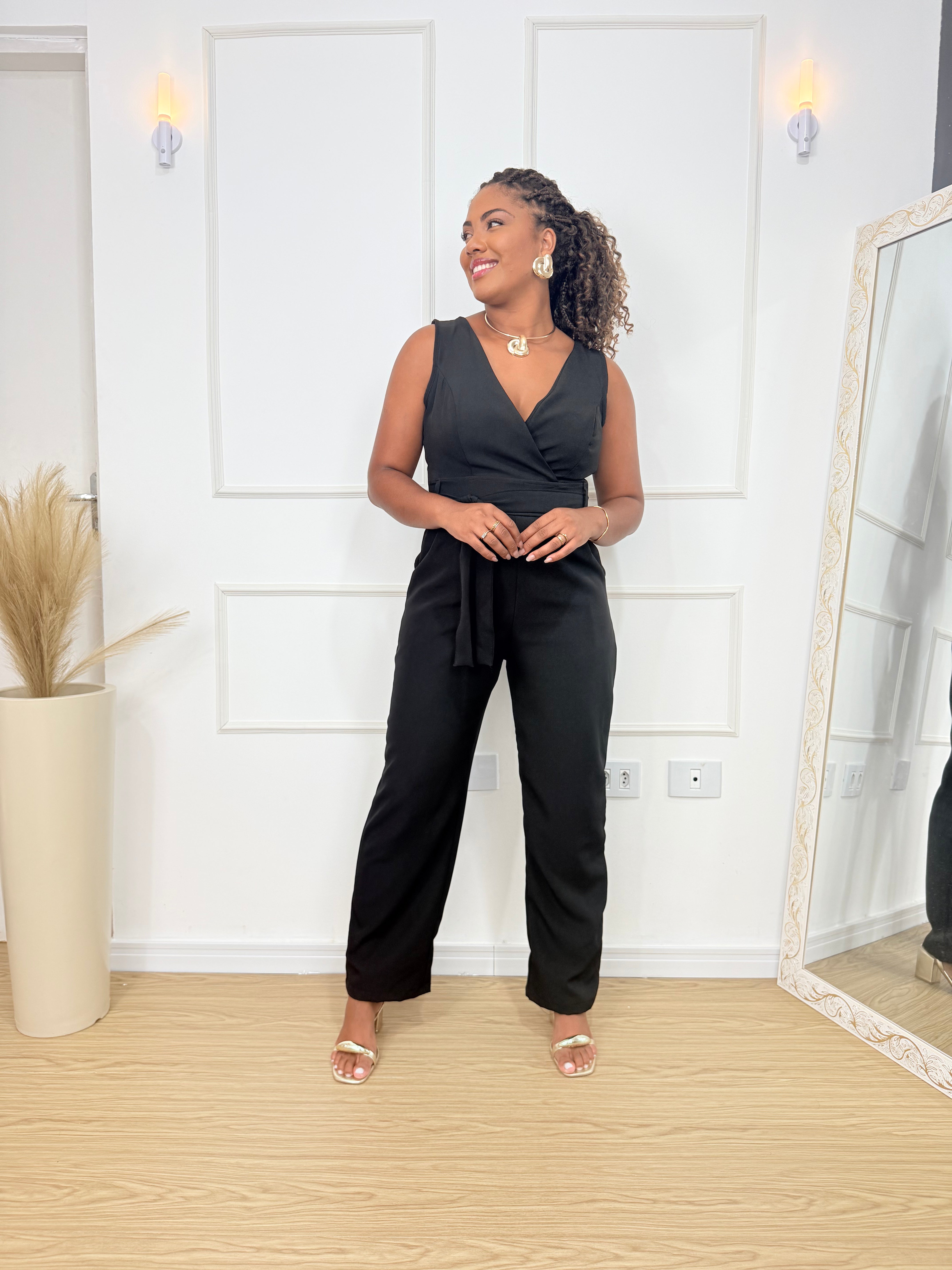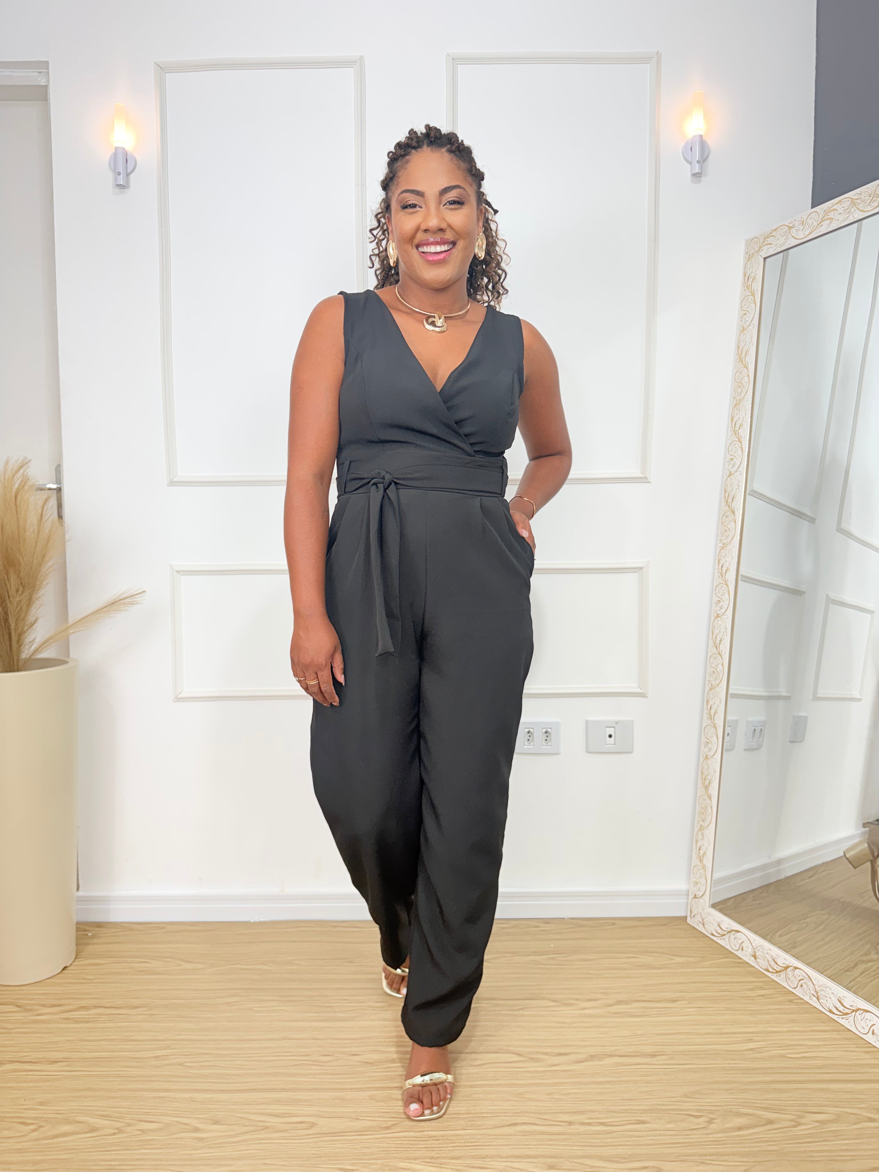 Macacão Samy uma peça que tem elegância e conforto para todas as graças. Confeccionado em alfaiataria de alta qualidade, garante ajuste perfeito e realça a silhueta com delicadeza. Possui zíper invisível e bolsos na lateral. Ideal para eventos casuais ou formais, é uma escolha versátil para o seu guarda-roupa.