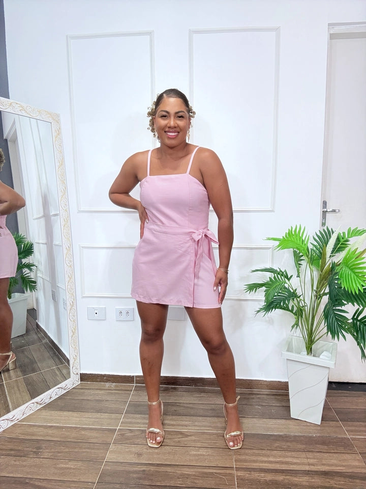 Macaquinho Bella leve, feminino e fresco, é a escolha ideal para dias quentes, eventos diurnos ou produções descomplicadas com estilo. As alças finas, com amarração lateral e elástica nas costas permitem um ajuste perfeito ao corpo.