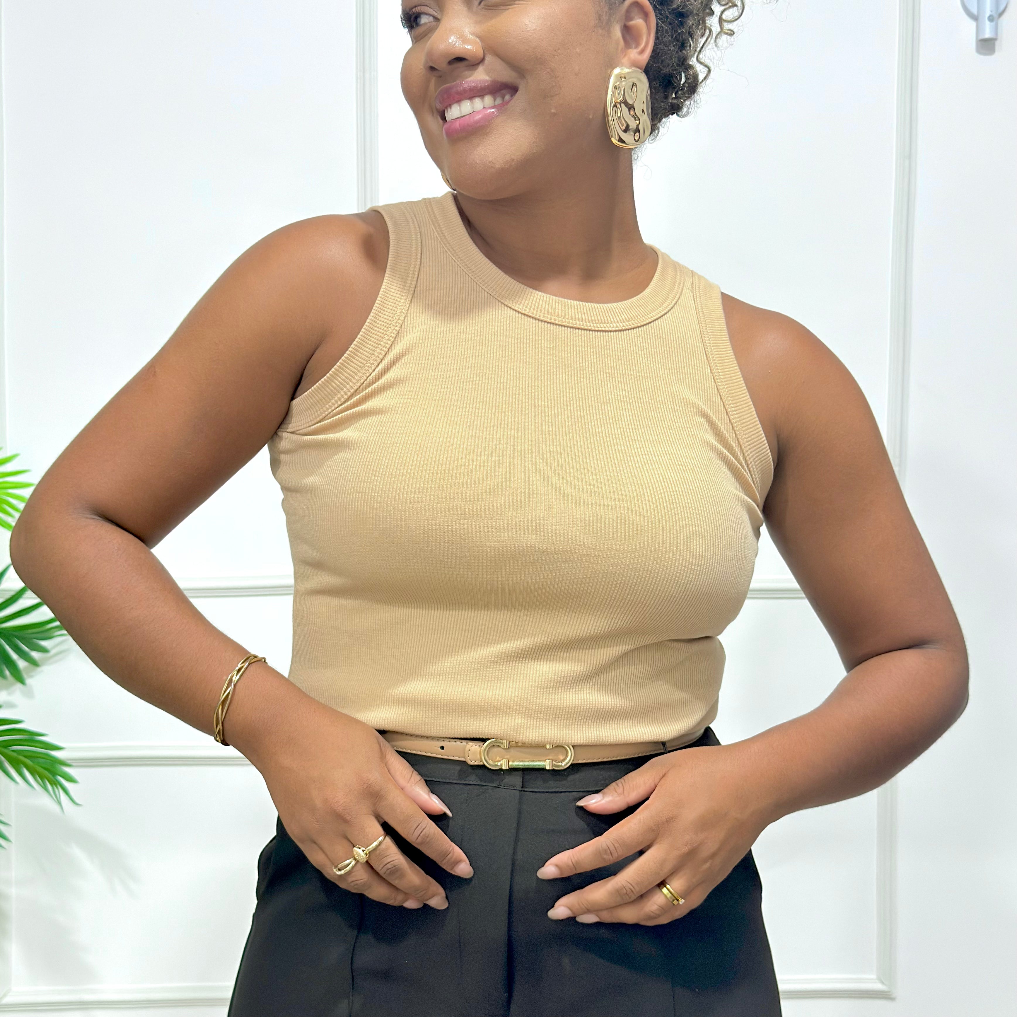 Regata Lore, em malha canelada, com ótima qualidade! Peça modelo perfeitamente ao corpo e possui comprimento até a cintura. Uma ótima aposta para compor looks despojados e criativos e também para complementar nossos looks formais com terceira peça por cima!