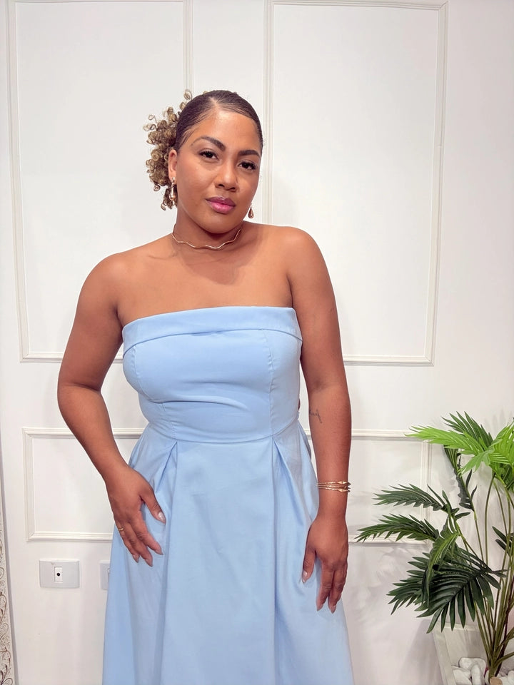 O Ella é o vestido perfeito para graças especiais a leveza e elegante em um design atemporal, busto estruturado com bojo com recortes sutis que valorizam a silhueta, enquanto a saia ampla garante movimento e fluidez ao caminhar. Uma peça feminina, confortável e cheia de charme.