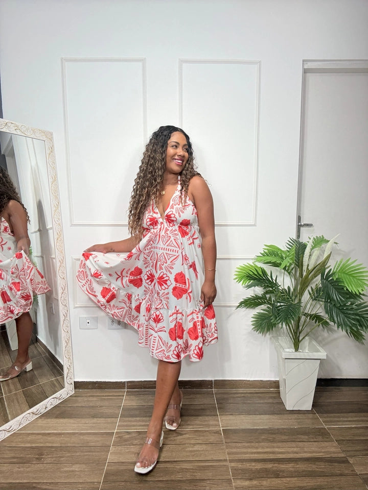 Vestido Flora é aquela peça ideal para quem ama afrescos e leves, com estampas atemporais e decotes marcantes valorizam a cor, enquanto o recorte abaixo do busto ao longo da silhueta. A saia com leve babado garante movimento e fluidez, criando um visual leve e feminino.